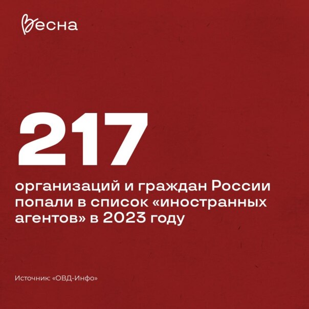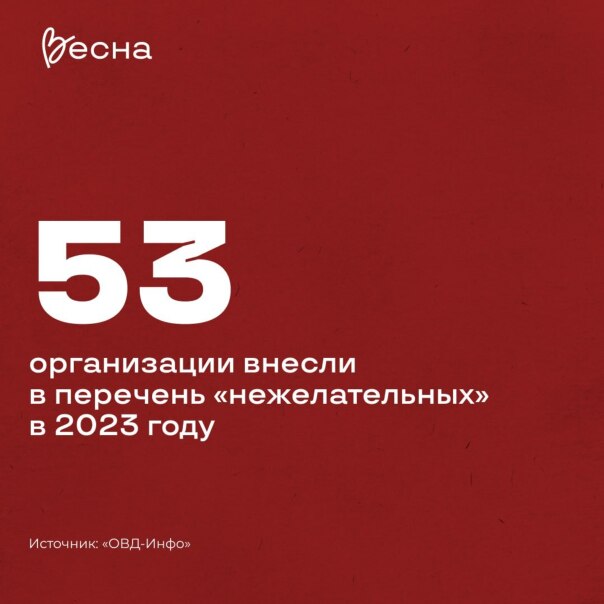 «Нежелательные», «иноагенты» и «экстремисты». В 2023 году в перечень «нежелательных» внесли 53 организации, а в список «иноагентов» — 217 объединений и граждан России. «Экстремистами» признали ЛГБТ-сообщество, «Новое величие», Конгресс ойрат-калмыцкого народа и «Весну».