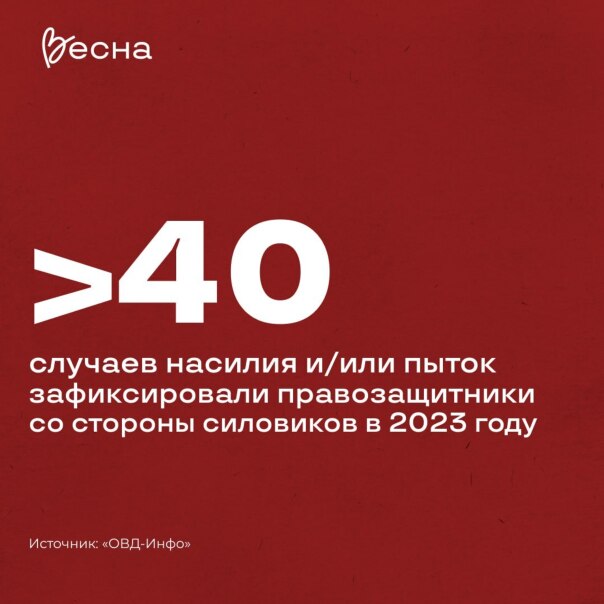 Насилие и пытки. Известно более 40 случаев насилия и пыток со стороны силовиков. Так, в июне в спецприёмнике Ростова-на-Дону убили активиста Анатолия Березикова. Политзаключённых регулярно отправляют в ШИЗО, им не оказывают медицинскую помощь и не передают письма.