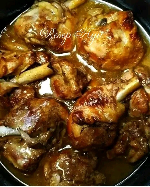 На 600 гр кусочков курицы(голень, бедра) берётся не больше, не меньше--300 гр лука, порезать и положить в сотейник с кусочком топлёного масла. Добавить 1/3 ч.л. соды--это ОБЯЗАТЕЛЬНО...именно она превратит лук в однородную подливу и даст курице сочность и цвет.