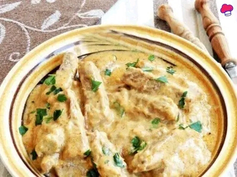 Мясо тушёное со сметанкой