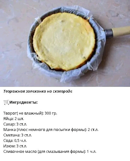 Взбить яйца с сахаром, добавить творог, сметану, хорошо перемешать. Далее добавить манку, соду и промытый изюм. Если творог был влажный и тесто получилось жидковатым, можно добавить еще манку. Сковороду выстелить пергаментом, смазать сливочным маслом и присыпать слегка манкой. Вылить туда творожное тесто, закрыть крышкой и выпекать минут 20-30 на медленном огне до приятного аромата. Крышку не открывать, поэтому лучше, если она у вас стеклянная. Готово.