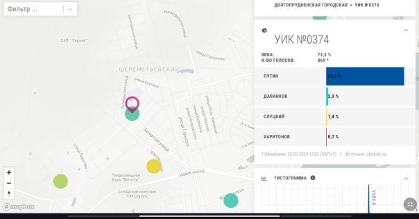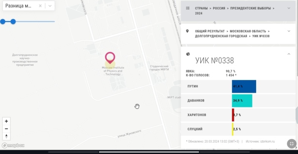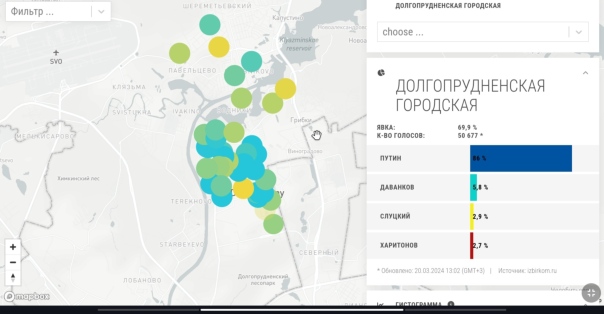 Ну и начнём с результатов непосредственно связанных с Борисом Борисычем, а именно участка где он голосовал, одним из его родных участков и результаты по городу Долгопрудный в целом.