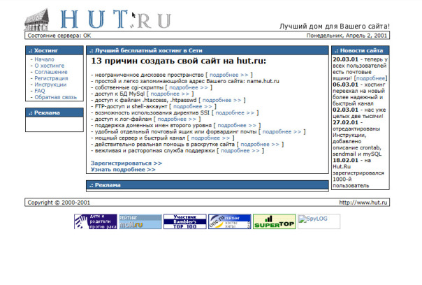Проект просуществовал до 2011 года. www.hut.ru/ (web.archive.org/web/20010405041648/http://www.hut.ru/) |
