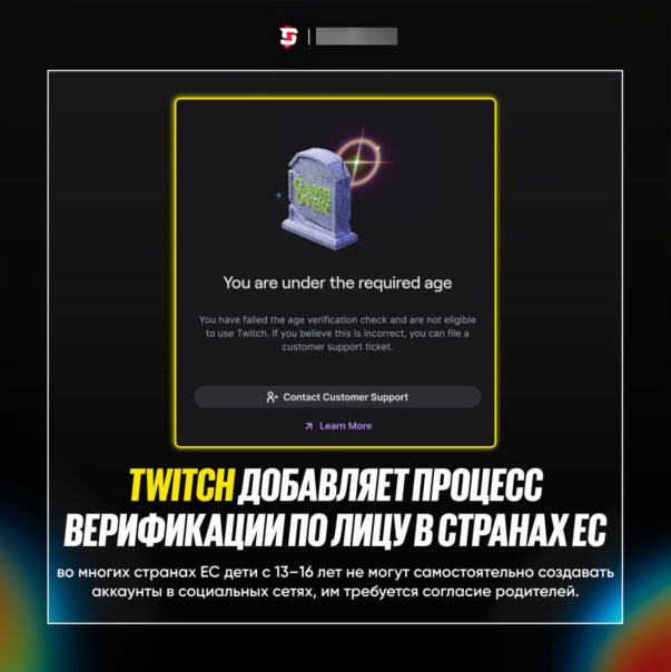 Twitch, согласно новым правилам в ЕС, начал добавлять процесс верификации на платформе по скану лица для людей, проживающих на территории Евросоюза ❗