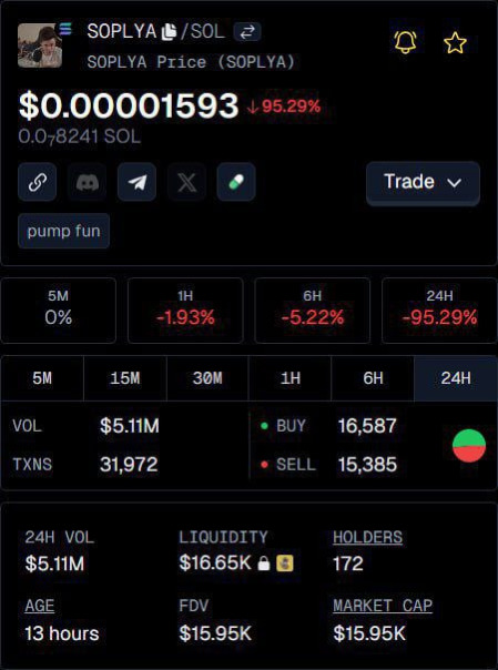 #JesusAVGN вчера запустил свой новый мем-коин $SOPLYA, который достиг объема общих торгов в $5.000.000