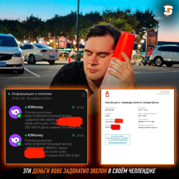 #Bratishkin отправил 1.000.000₽ на благотворительность, эти деньги Вова получил в челлендже от #Evelone 🕊