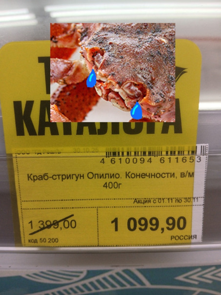 Сегодня, гуляя по продуктовому магазину, я наткнулся на ужасную картину. "Краб-стригун Опилио. Конечности".