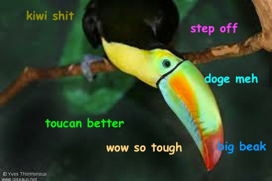 За многие годы тукан был героем многих мемов, но самый популярный из них - это использование в виде копипасты "le toucan has arrived".