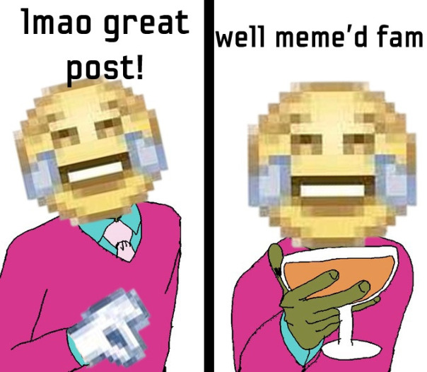"Well Meme'd" - ироничное выражение, обычно сопровождающееся эксплуатируемым изображением персонажа, который смеется и говорит «HAHAHA, GREAT POST!», а затем «WELL MEME'D, MY FRIEND!». В оригинале персонажем на картинке был Пепе, но позже был создан шаблон, который привел к появлению многочисленных вариаций.