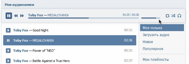 Теперь эта кнопка будет вести на последнюю страницу, где было начато воспроизведение музыки. Ну не просто же ей быть дубликатом кнопки "Мои Аудиозаписи" :)