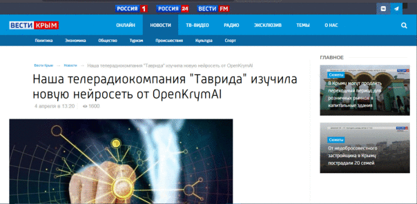 Про нейросети KrymGPT написали в Вестях крыма