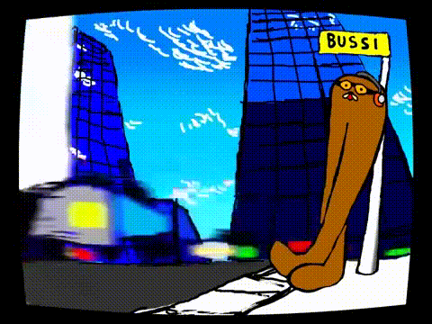 Outside walking to the corner store