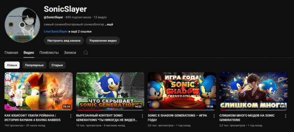 | Личный сайт: | https://www.youtube.com/@SonicSlayer |
