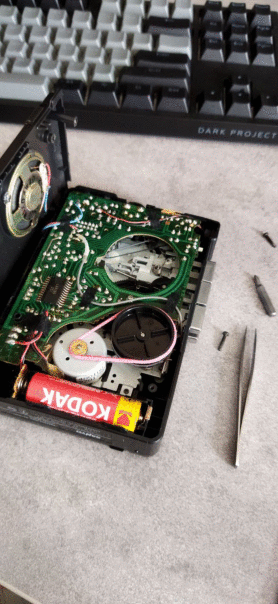Руки дошли до плеера,начал замедляться на половине заряда батереек.Оказалось что просто ремешок ослаб,палазел нашел резинку работает как часики и звук стал четче (черный ориг.) И еще мой кот Мика,объелся мяса сырого и лежит батониться.