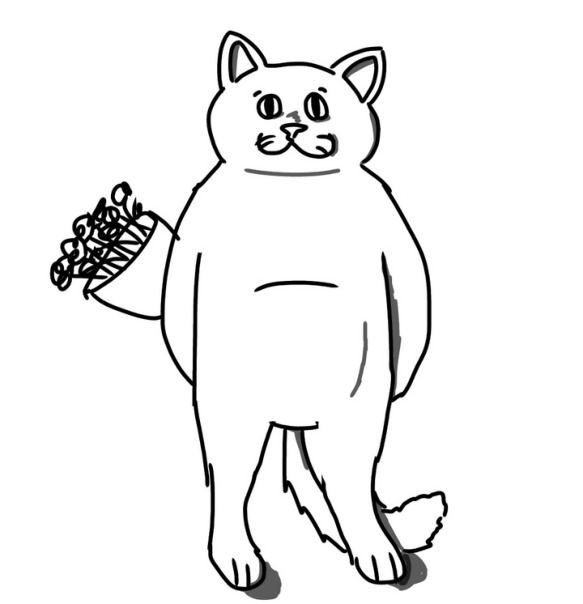 Зарисовка котэ с букетом ромашек