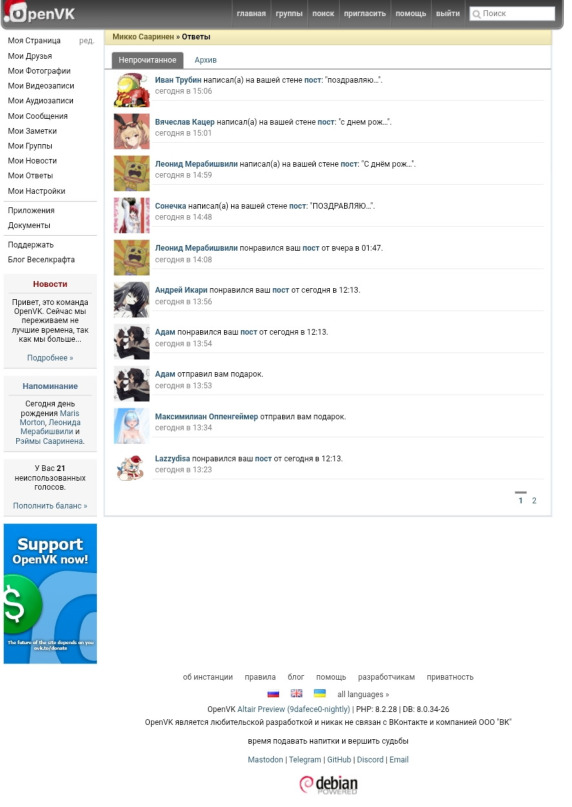 Старый интерфейс