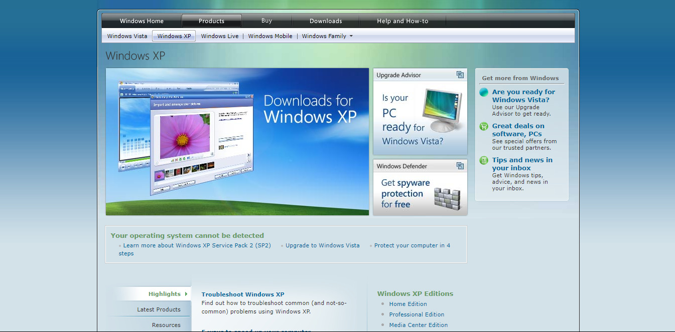 сайт майкрософт за 2008г. вкладка в...