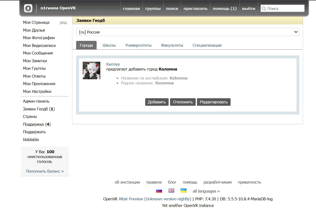 Старый интерфейс