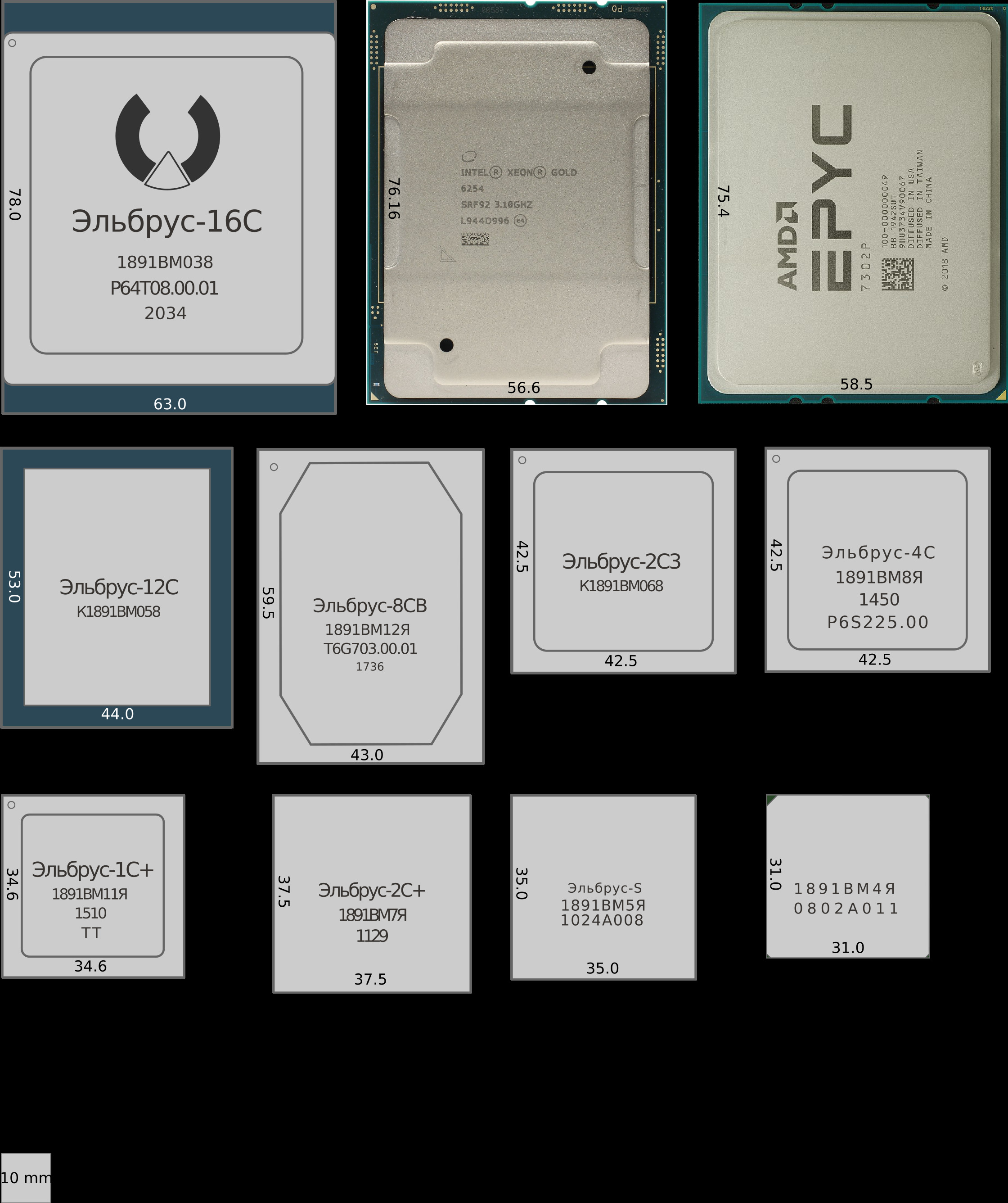 Сравнение размеров чипов...