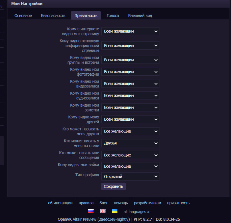 Старый интерфейс
