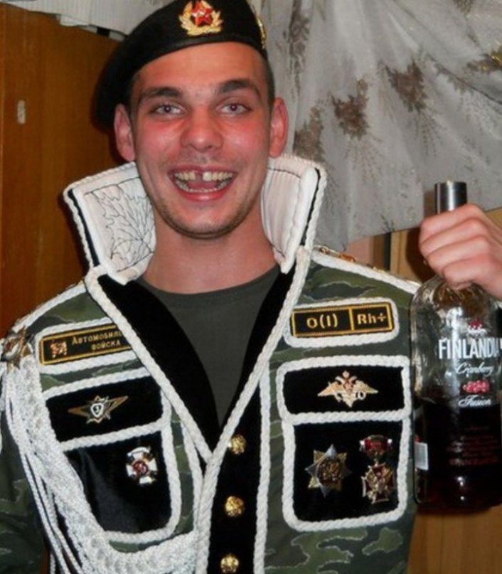 вот как видите наш дембель Зубаш открывал бутылку зубами, ну по нему видно)