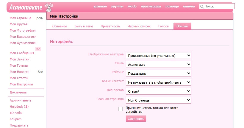 Старый интерфейс