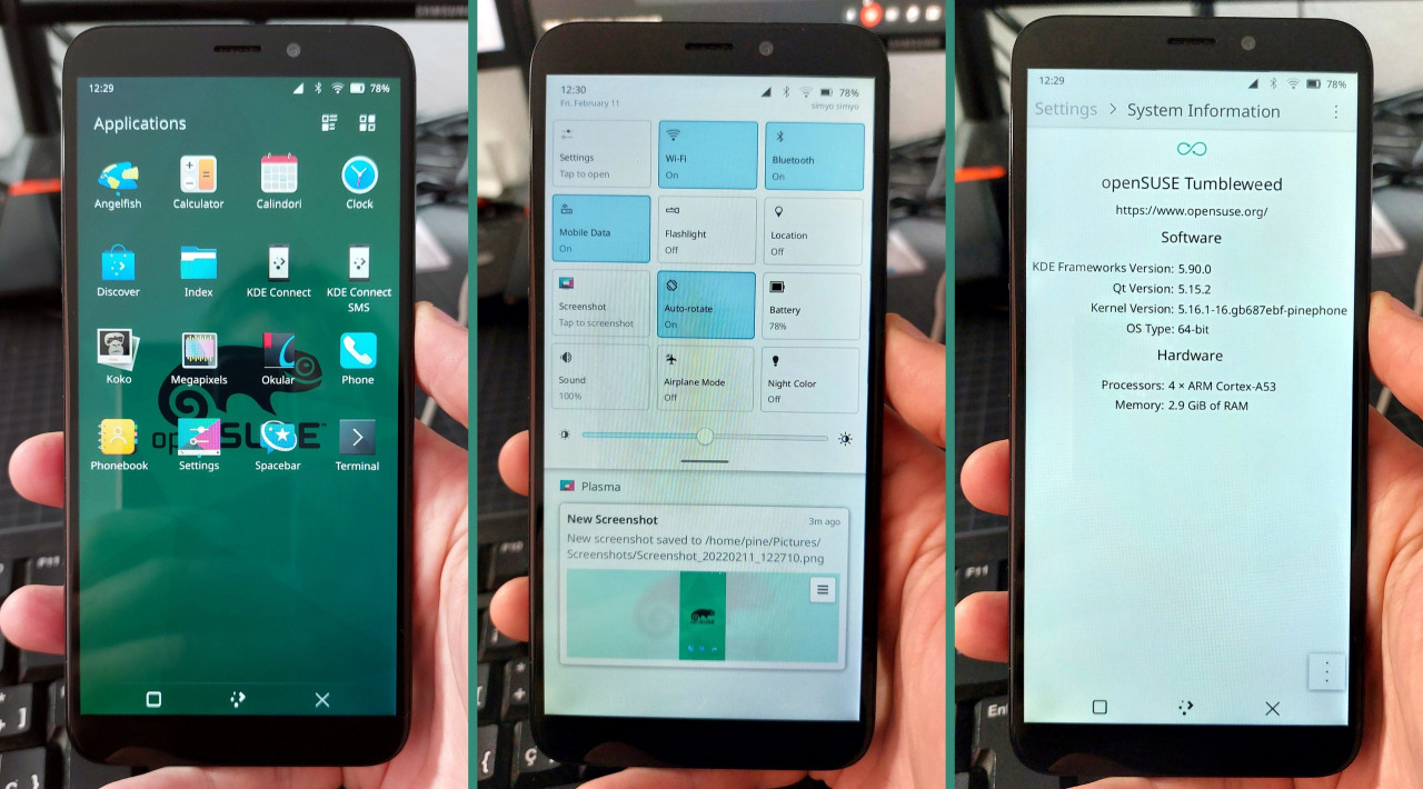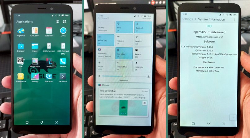openSUSE с KDE Plasma Mobile на Pine...