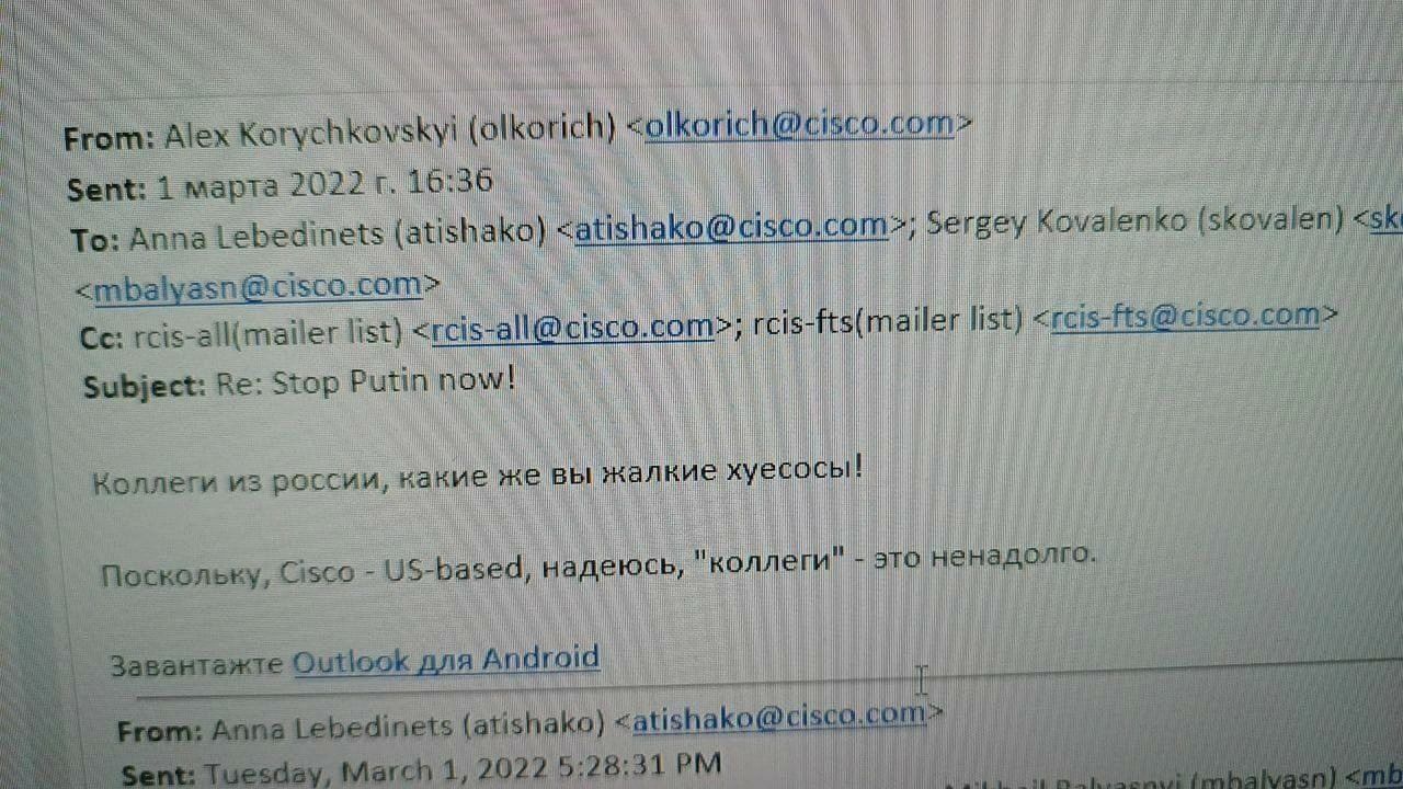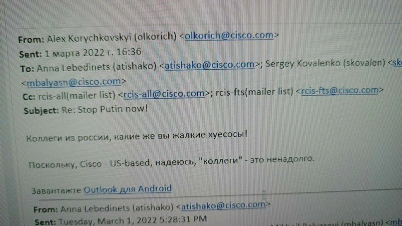 Письмо от Cisco ...