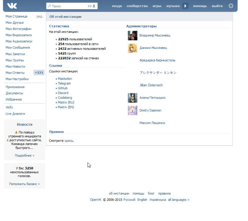 Старый интерфейс