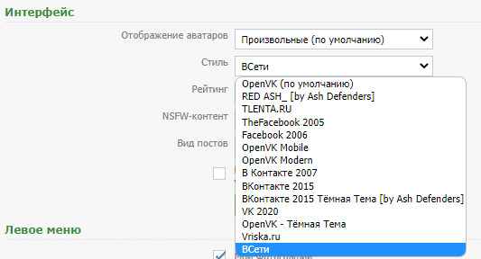 Старый интерфейс