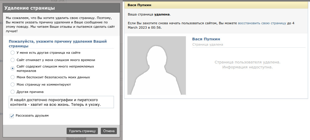 Теперь можно удалить свою страницу н...
