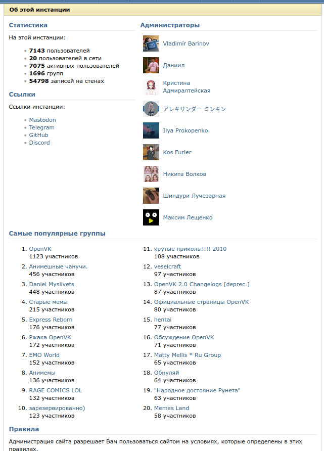 Раздел "Об инстанции" обновился С...