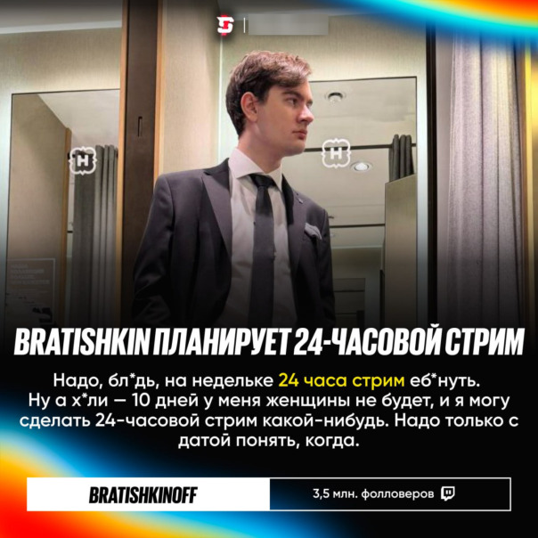 #Bratishkin планирует провести 24-часовой стрим