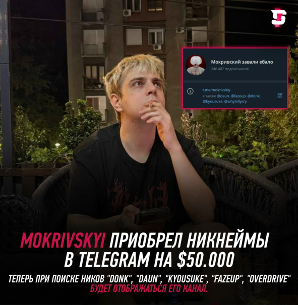#Mokrivskyi оказался таинственным покупателем таких юзернеймов для своего Telegram-канала как "donk", "daun", "kyousuke", "fazeup", "overdrive"