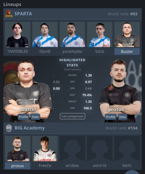 ![]() Слава выступит за команду «SPARTA» в качестве замены. Матч против «BIG Academy» начнётся в 18:30. |