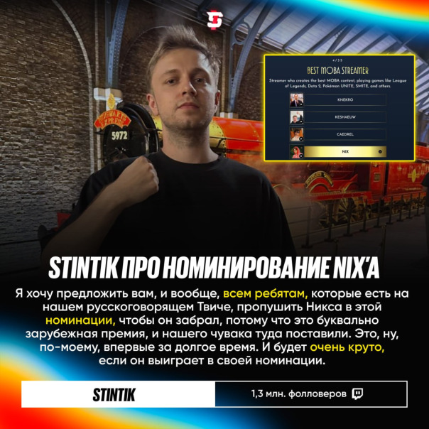 #Stintik призвал голосовать (thestreamerawards.com/) за #Nix на The Streamer Awards 2025 📱