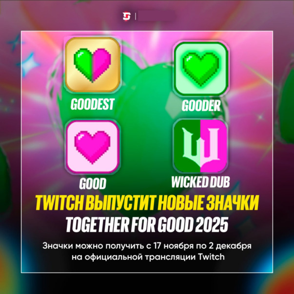 Twitch выпустит новые значки в честь благотворительного марафона «Together for Good 2025» ⚡