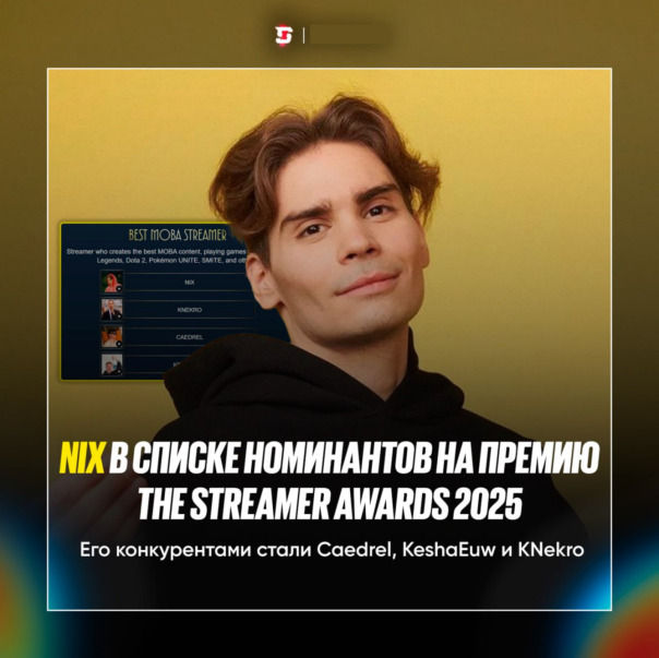 #Nix попал в список номинантов на «Лучший MOBA-стример» в зарубежной премии The Streamer Awards 2025 💫