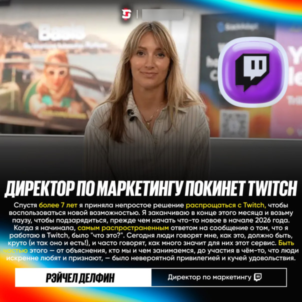 Главный директор по маркетингу Twitch Рэйчел Делфин покинет компанию в конце месяца ⚡