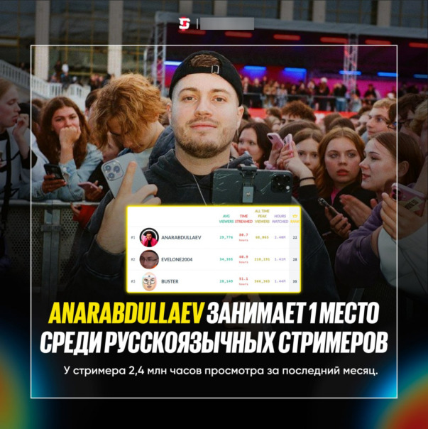 #AnarAbdullaev занимает 1 место среди русскоязычных стримеров на Twitch 📈