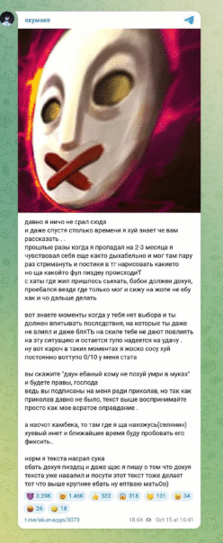 "прошлые разы когда я пропадал на 2-3 месяца я чувствовал себя еще както дыхабельно и мог там пару раз стримануть и постики в тг нарисовать какието