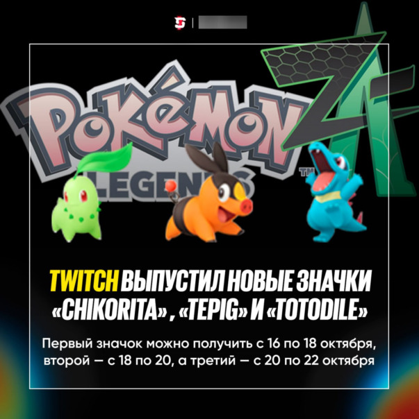 Twitch выпустил три новых глобальных значка — «Pokémon Legends: Z-A Chikorita, Tepig и Totodile» ⚡