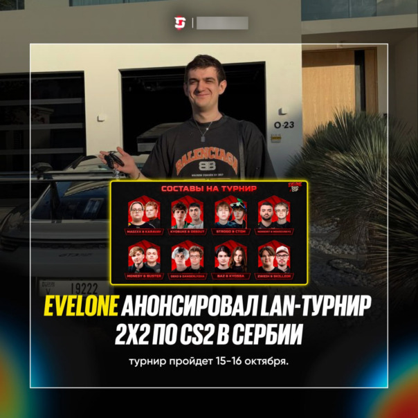 #Evelone анонсировал LAN-турнир 2x2 по CS2 среди стримеров и киберспортсменов