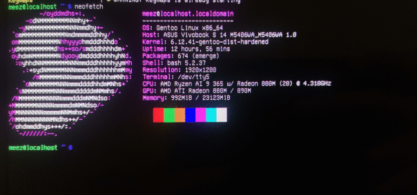 пивет вклоиды!! пишу этот пост прямо со своей НОВОЙ крутой рабочей стации на так называемой генте. все эти три дня я ебался, вы не поверите, но не с женщиной из прошлого поста, а с компуктером. гента популярна своей "сложностью" и глубокой настраиваемостью, так что я решил воплотить свою давнюю мечту -- десспособная ОС без графического интерфейса. ведь все давно в курсе, что интернет 3.0 кал, а любой гуи вызывает рак мозга.