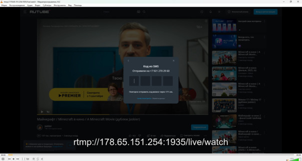 подключение через vlc или другой медиаплеер поддерживающий rtmp