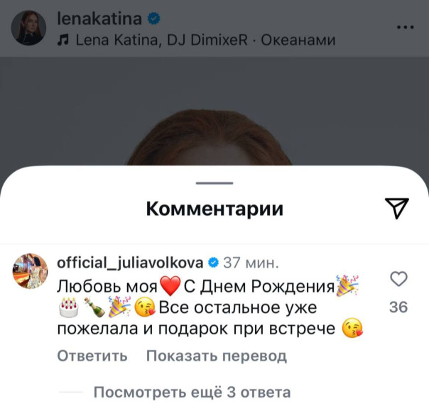 Лена Катина и Юля Волкова в своих инстаграмах: