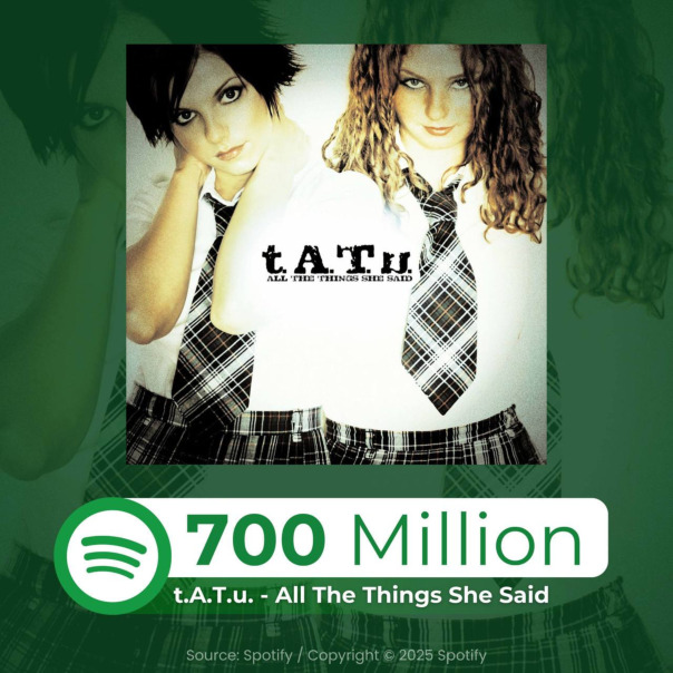 «All The Things She Said» — преодолел отметку в 700 миллионов прослушиваний на Spotify!
