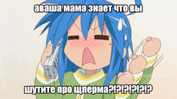 *картинка с недовольной котаной изуми и написью 26 шрифтом импакт "аваша мама знает что вы шутите про щперма?"*