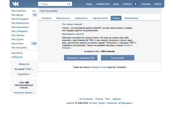 Теперь вы можете передавать голоса любому пользователю (указывая его ID/полную ссылку или кастомный адрес страницы) в неограниченных количествах. Данная возможность доступна во вкладке "Голоса" в разделе "Мои Настройки"