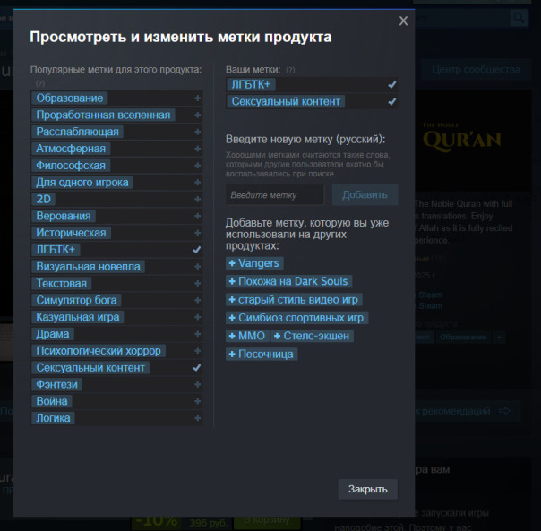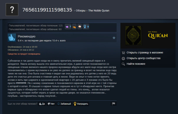 В стим залили коран.